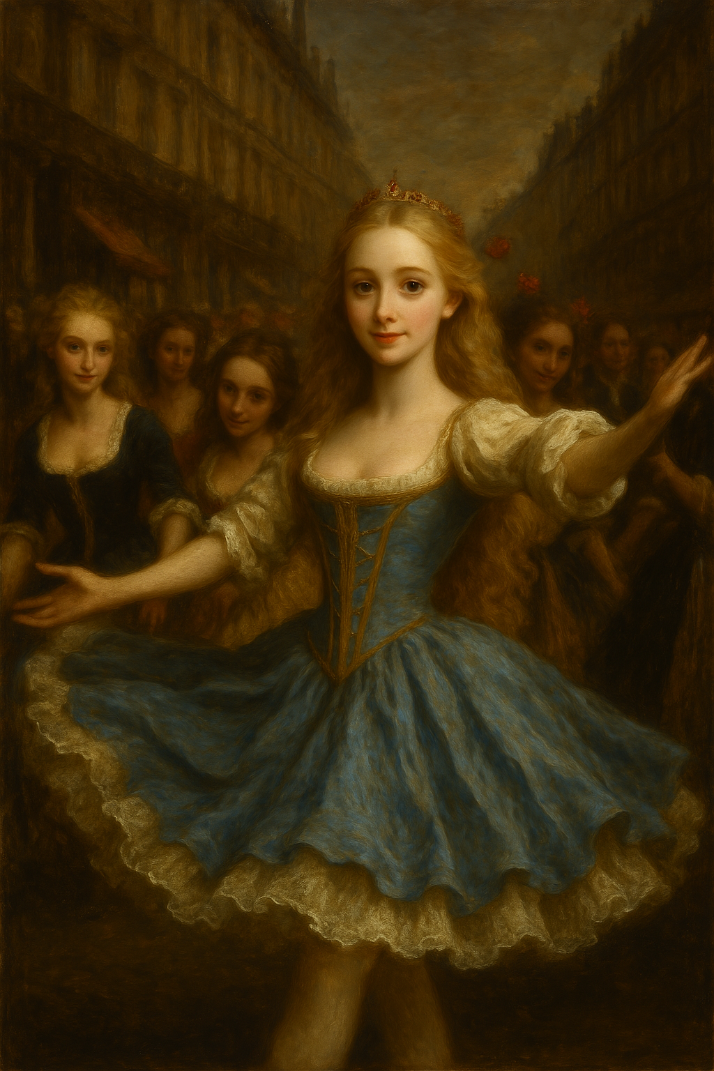 Y llegó el gran día. La sastrería se transformó en una suerte de camerino improvisado: costureras, peinadoras y maquilladoras ayudaban a las bailarinas a prepararse para el desfile que conmemoraría el decimoquinto aniversario de la victoria en Rocroi. No se trata solo de entregar trajes: se cuida cada detalle para que el espectáculo sea impecable. Lucille, como siempre, lideraba con temple, aunque esta vez también iba a formar parte del evento. Ha decidido que tanto esfuerzo le ha hecho ganarse una recompensa, y en consecuencia ella también vestirá un atuendo especial y participará bailando por las calles, entre vítores y música.